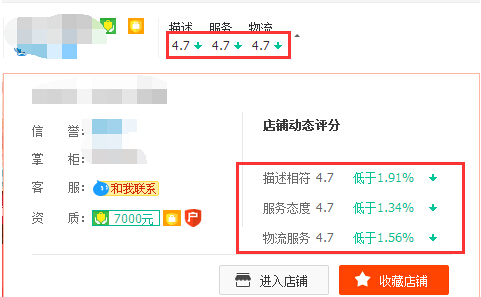 如果店铺动态评分低于同行业评价分数,这就说明咱们店铺的宝贝必定存在问题,如果持续一段时间,会对宝贝转化产生影响,进而使得流量下滑。